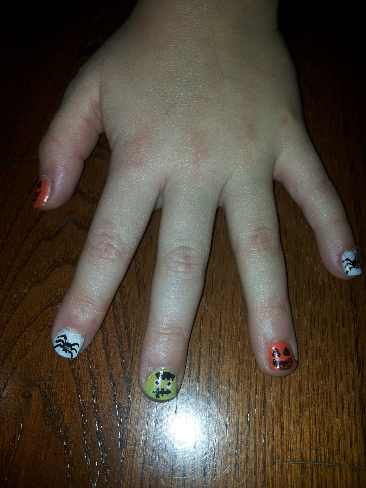 Ciao gente!!! Lo so Halloween è passato già da diversi giorni e noi abbiamo già riposto zucche, cappelli, teschi e mostri vari però volevo farvi vedere la nail art che ho fatto a mia figlia.